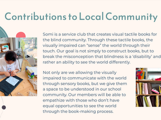 I led a dedicated team of twenty to design and hand-sew tactile picture books for the visually impaired, and I organized cookie and bracelet fundraisers to provide materials, merging design with community service.